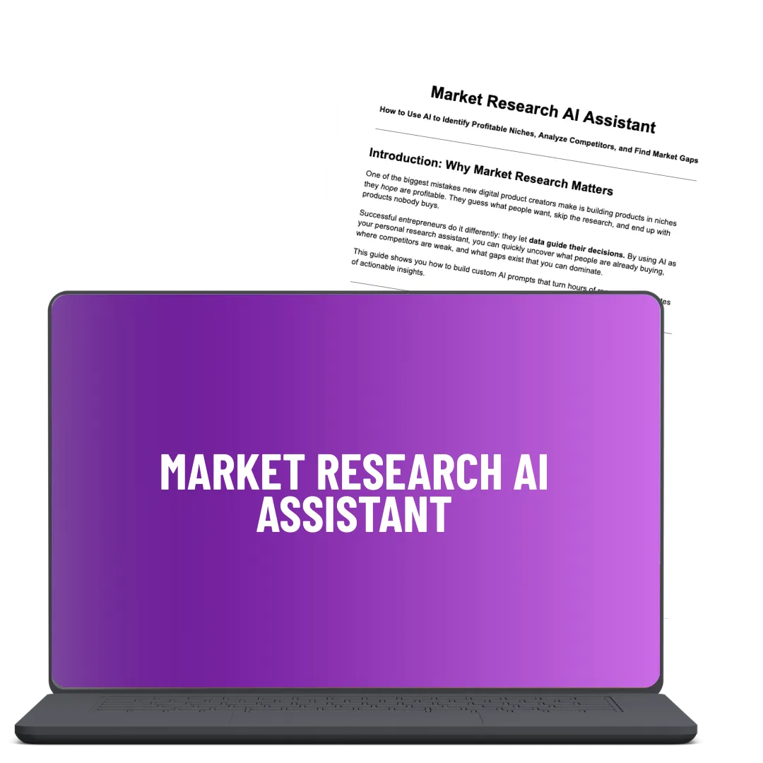 BONUS #3: Market Research AI Assistant: Custom AI prompts for identifying profitable niches, analyzing competitor products, and finding gaps in the market where your products can dominate.
