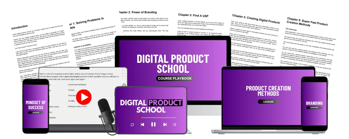 When you invest in Digital Product School, you're getting the complete roadmap to building your own 6-figure information product business. Plus instant access to 🎁 4+ Exclusive Bonuses that eliminate the guesswork and fast-track your success from day one.